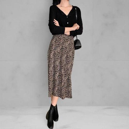 [다잇템]여성 문양 슬릿 뒷밴드 독특한 표범 롱 치마