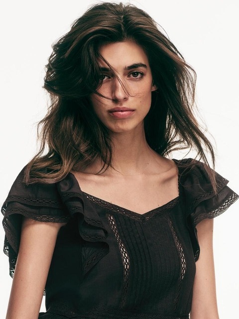 [에이치엔엠] 레이스 트리밍 블라우스 블랙 1325413003