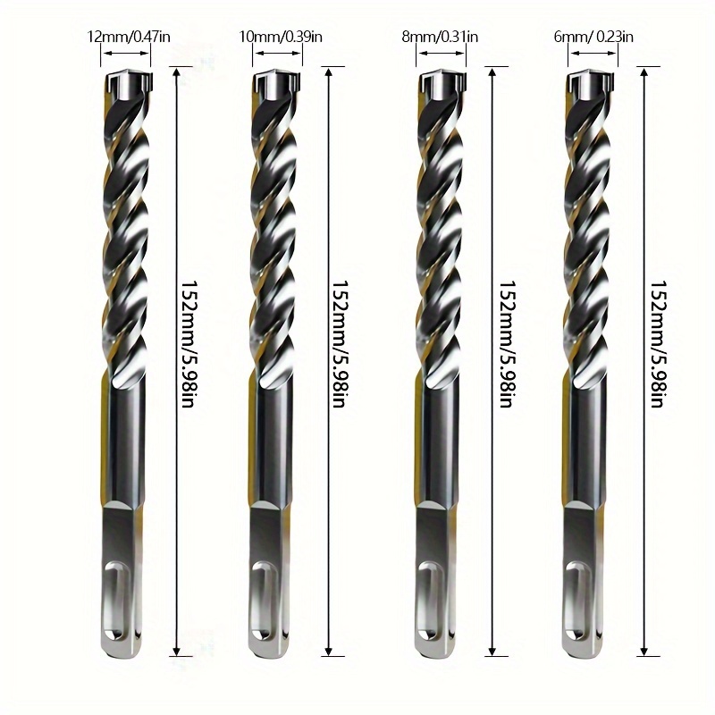 TEMU 전기 해머 드릴 비트 크기 5, 6, 8, 10, 12, 14, 16, 및 18Mm, 크로스 타입 디자인으로 만든 텅스텐 강철 합금, 벽돌, 콘크리트, 암석 및 돌에 적합합니다.