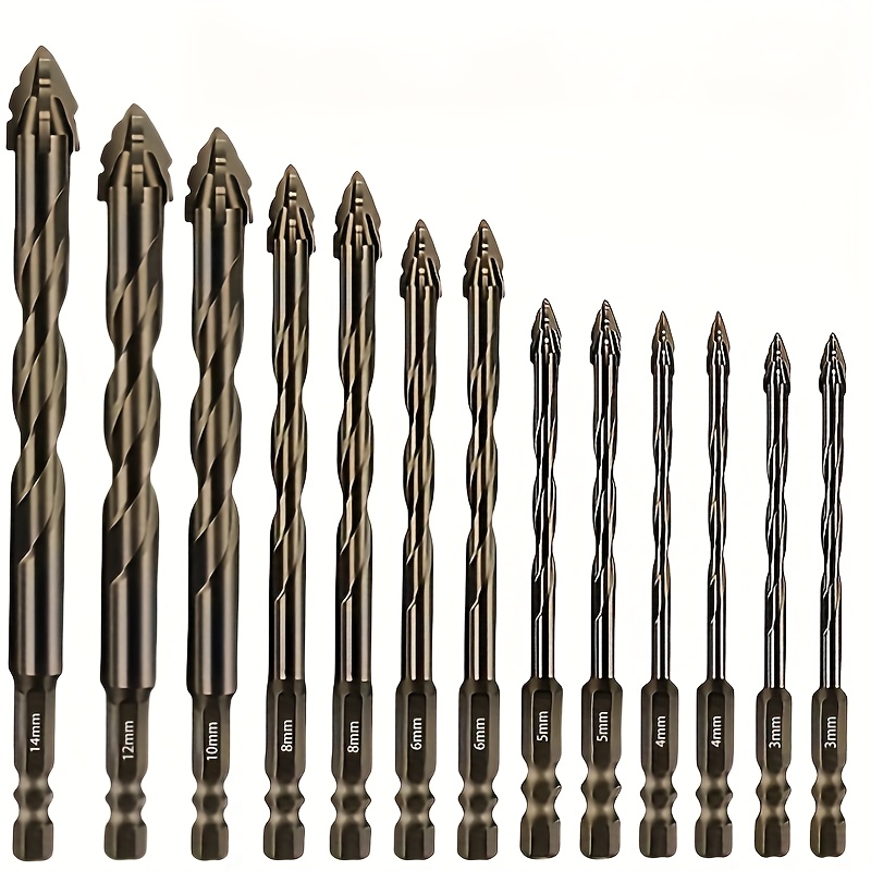 TEMU 13피스 헤비듀티 하드 합금 드릴 비트 세트 - 4날 톱니형 드릴 비트, 헥스 샹크 & 직선 슬롯, 건식 드릴링용 (물 없음) - 날카로운 석공, 콘크리트, 유리, 대리석, 돌, 스테인리스 스틸 & 드라이월 드릴링 키트 (전문가용)