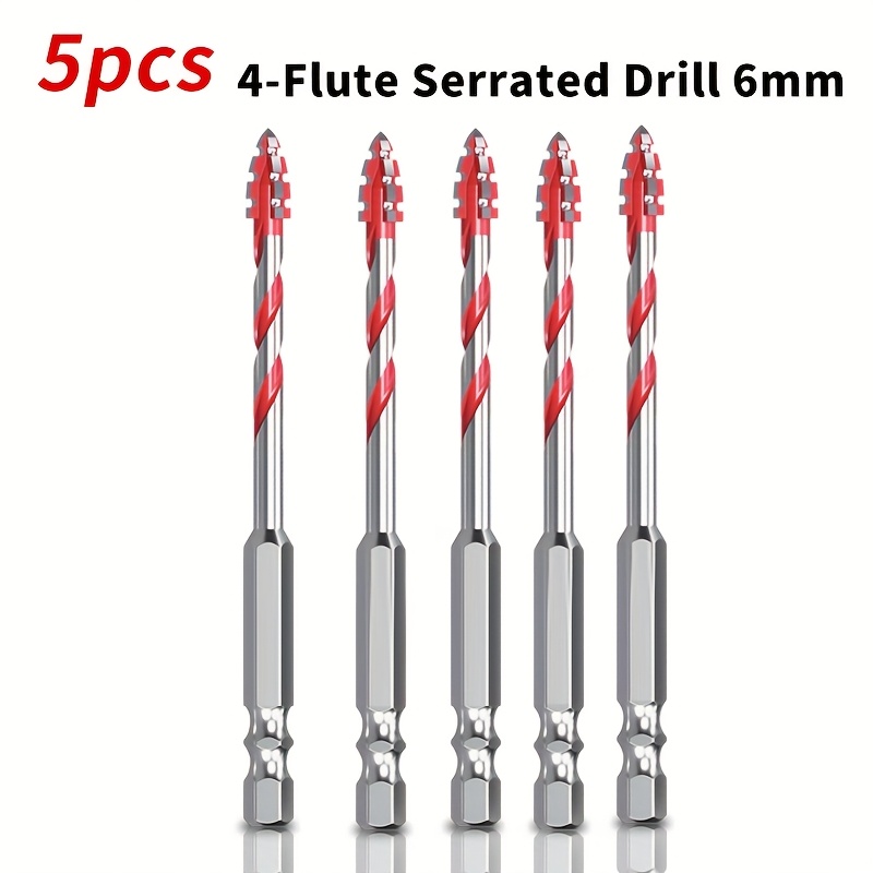 TEMU 합금 드릴 비트 세트 - 6/8/10/12mm 5개 세트 또는 혼합 4개 세트 다기능 4개 블레이드 세라티드 드릴 비트, 콘크리트, 타일, 나무 및 돌에 구멍을 뚫기 위해 사용됩니다.