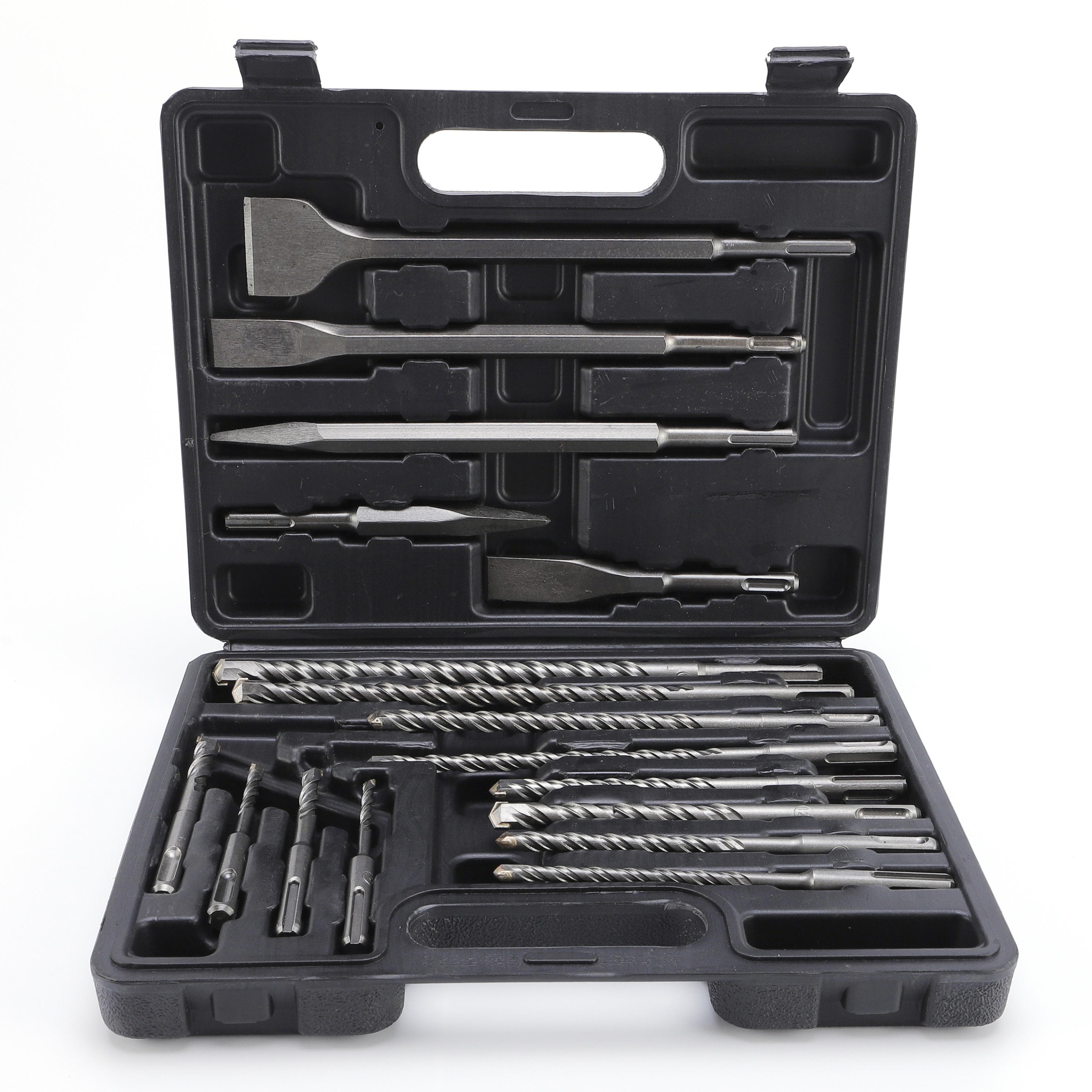 TEMU 17pcs SDS PULS 해머 드릴 비트 및 끌 세트 공구 선물, SDS Plus 초경 팁 콘크리트 석조 구멍 도구 드릴 비트 및 끌 세트 (콘크리트, 돌, 벽돌용), 휴대용 보관 케이스 포함.