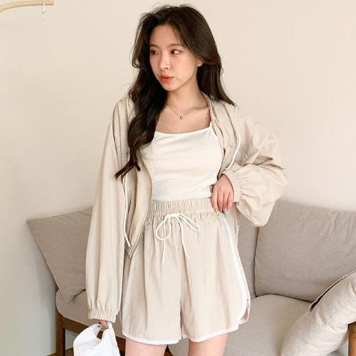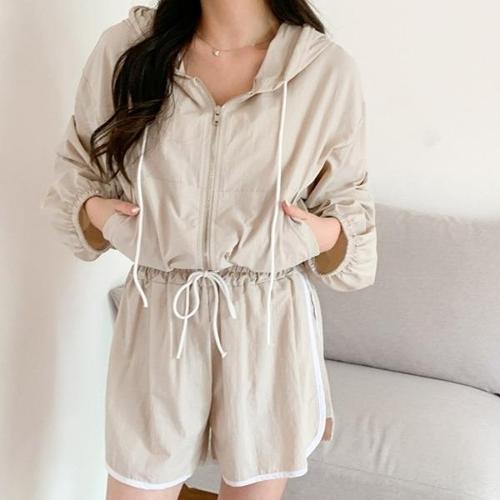 [다잇템][다잇템] 여성 돌핀 나일론 박시핏 바지 집업 짧은 후디 세트_20465434_588872