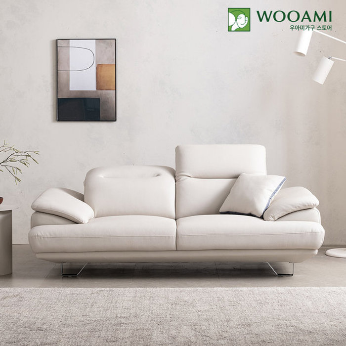 우아미가구 [착불]도버 3인 무빙헤드레스트 가죽 소파 2color