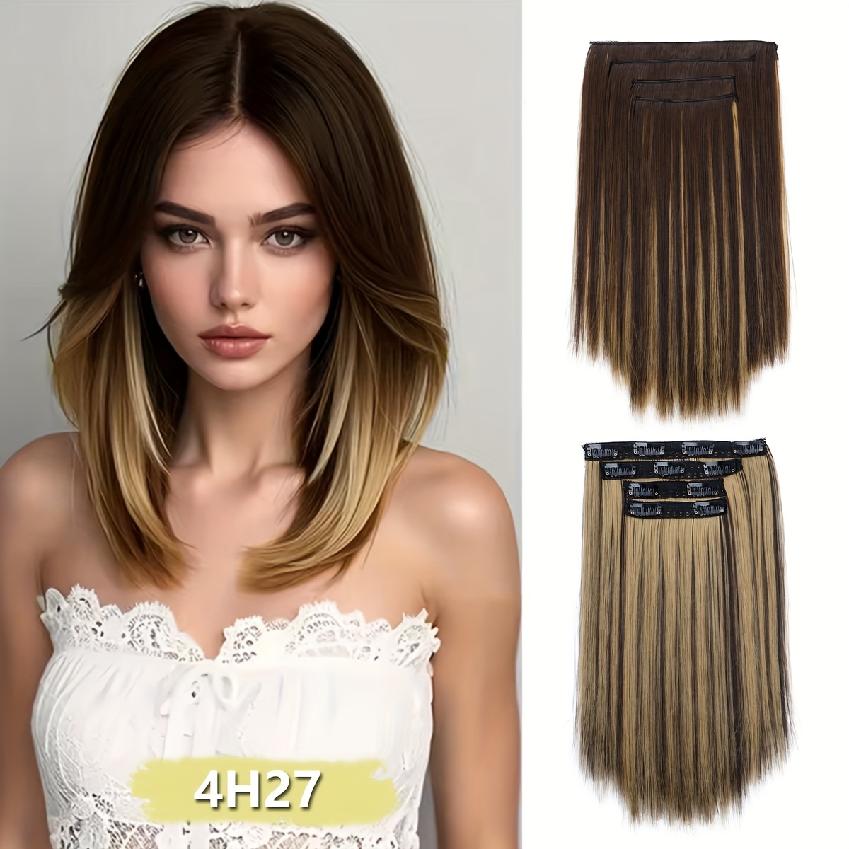 TEMU 14인치 11클립 합성 짧은 헤어 익스텐션 클립, 블랙 & 블론드 고온 내성 섬유 여성용 머리 볼륨 증가, 다양한 컬러