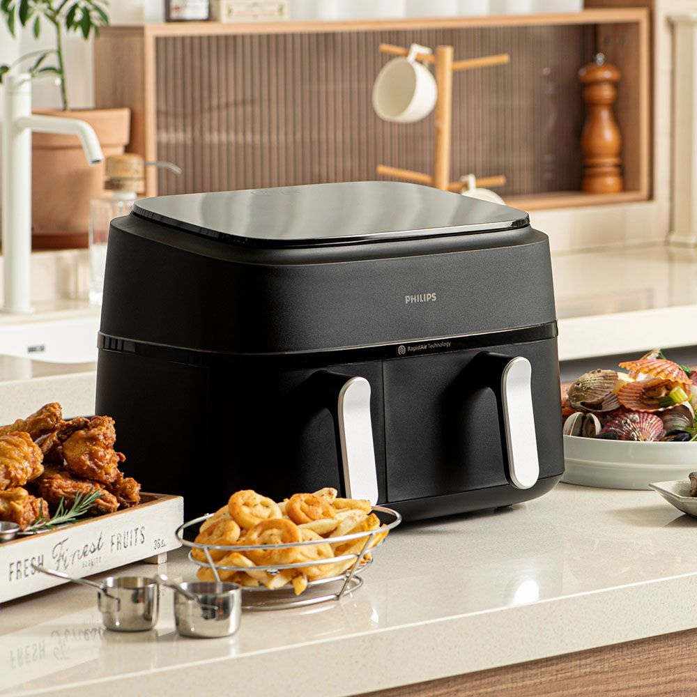 필립스 3000시리즈 듀얼바스켓 에어프라이어 9L NA351/00 블랙