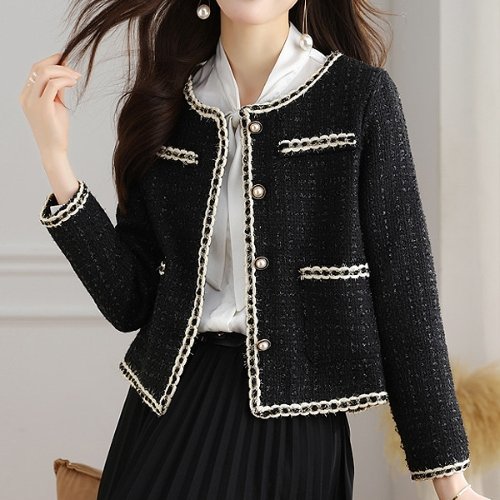 2026 트위드 코리아 고품질 숏 트위드 재킷 여성 한국 의류 싱글 브레스티드 레이디 블레이저 올매치 캐주얼 코트 탑