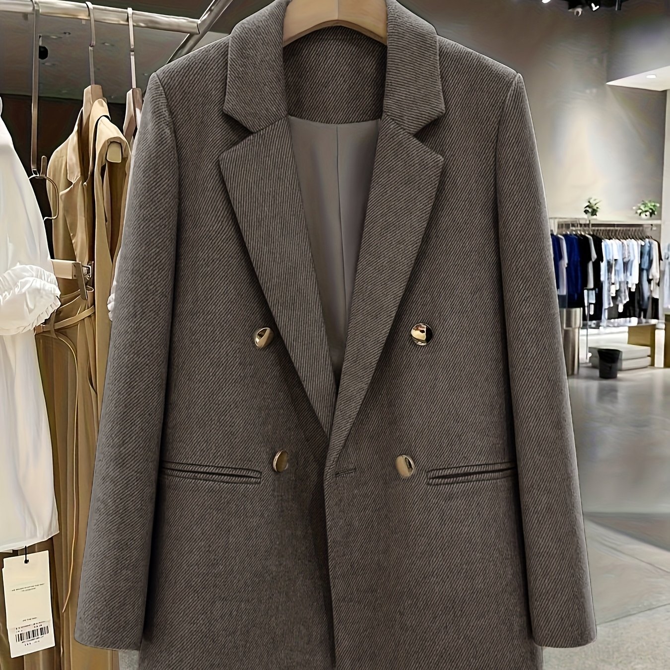 TEMU [서부 통근 스타일] 라이트 커피 텍스처 트위드 더블 브레스트 , 루즈한 미드 레인지 통근 다용도 여성용 정장