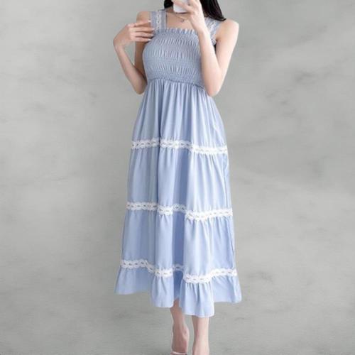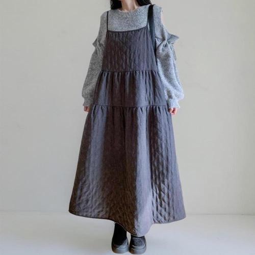 여성 퀼팅 코르셋 끈 드레스 에이라인 롱드레스