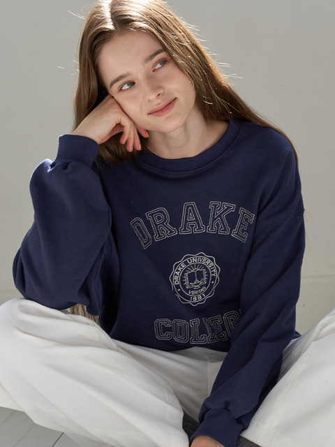 [프리시] 드레이크컬리지자수스웻셔츠_네이비