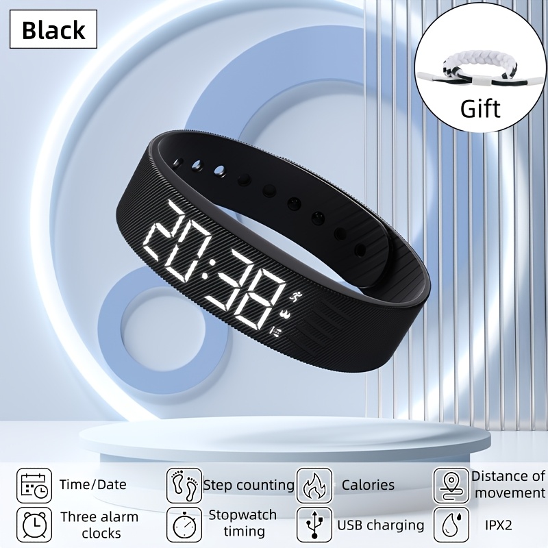 TEMU 패션 남녀공용 다기능 스포츠 시계 - 가볍고 편리함, 부드러운 스트랩, 알람, 칼로리 계수기, 만보기, 스톱워치 기능 포함, 십대 및 학생용 디지털 시계, USB 충전식, 1111개 글로벌 휴일에 적합한 선물