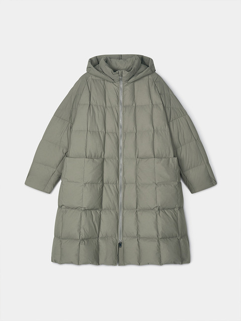 [레프트서울] 와이드핏 후디드 구스 다운 롱 점퍼 [그린]