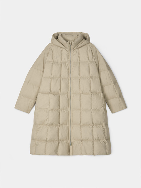 [레프트서울] 와이드핏 후디드 구스 다운 롱 점퍼 [베이지]