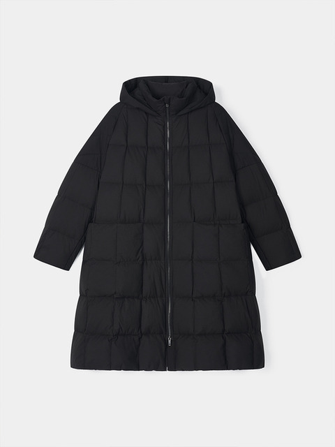 [레프트서울] 와이드핏 후디드 구스 다운 롱 점퍼 [블랙]