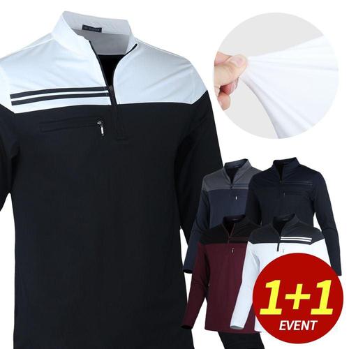 1+1남자 겨울 긴팔티셔츠 목폴라 반목 티셔츠 기능성 스판 작업복 히트텍 상의 기모 방한 등산복 골프웨어