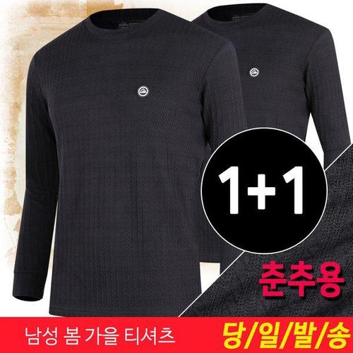 (1+1) 포근한 기모 안감 무지 집업 티셔츠 남성 스판 가을 겨울 단체등산복 산악회 업티 겨울티