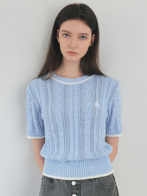 [시티브리즈] 배색 케이블 반팔 니트 _SKY BLUE