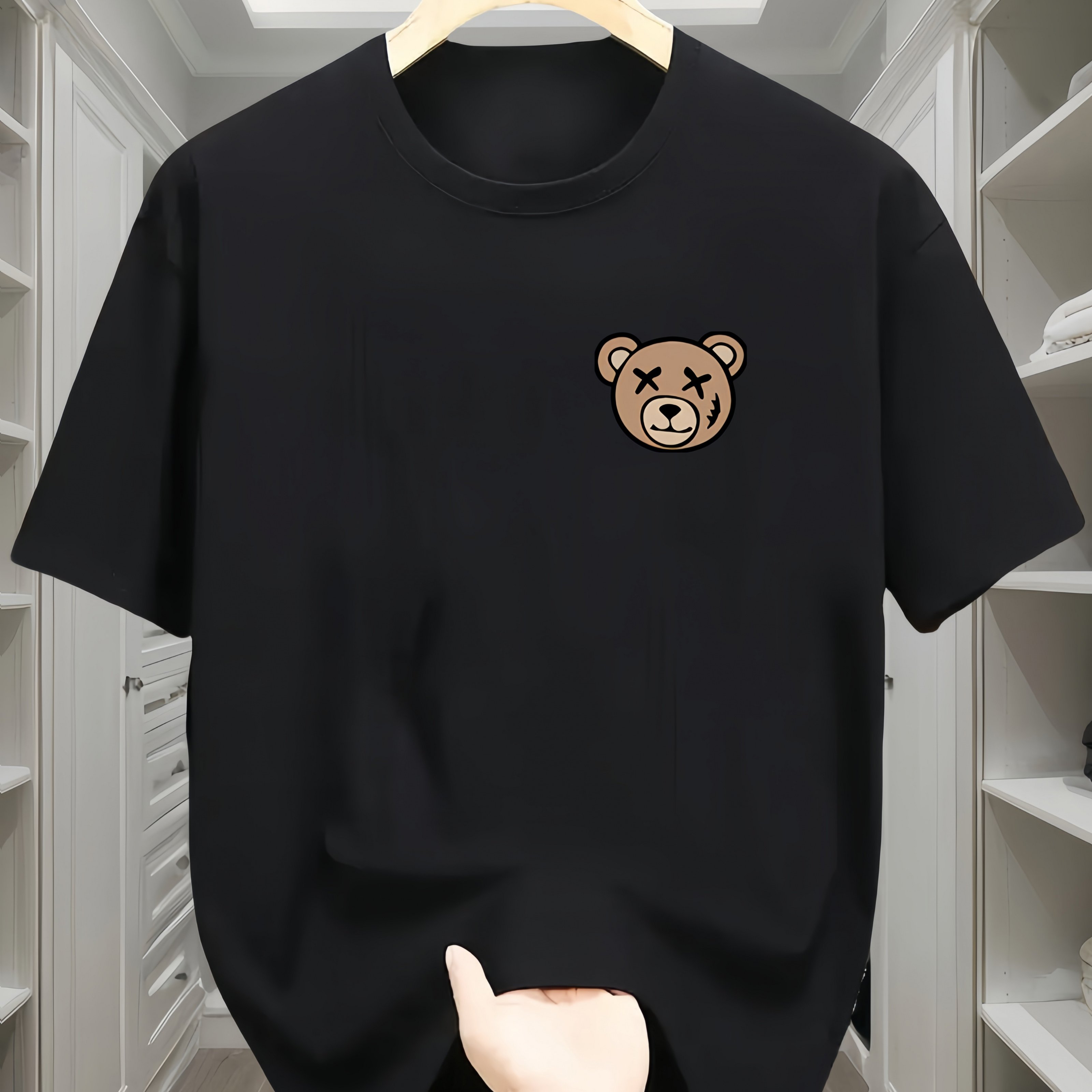 TEMU 남성용 100% 폴리에스터 티셔츠, 캐주얼 다용도 베이스 레이어, 편안한 운동복 상의, 귀여운 곰돌이 패턴