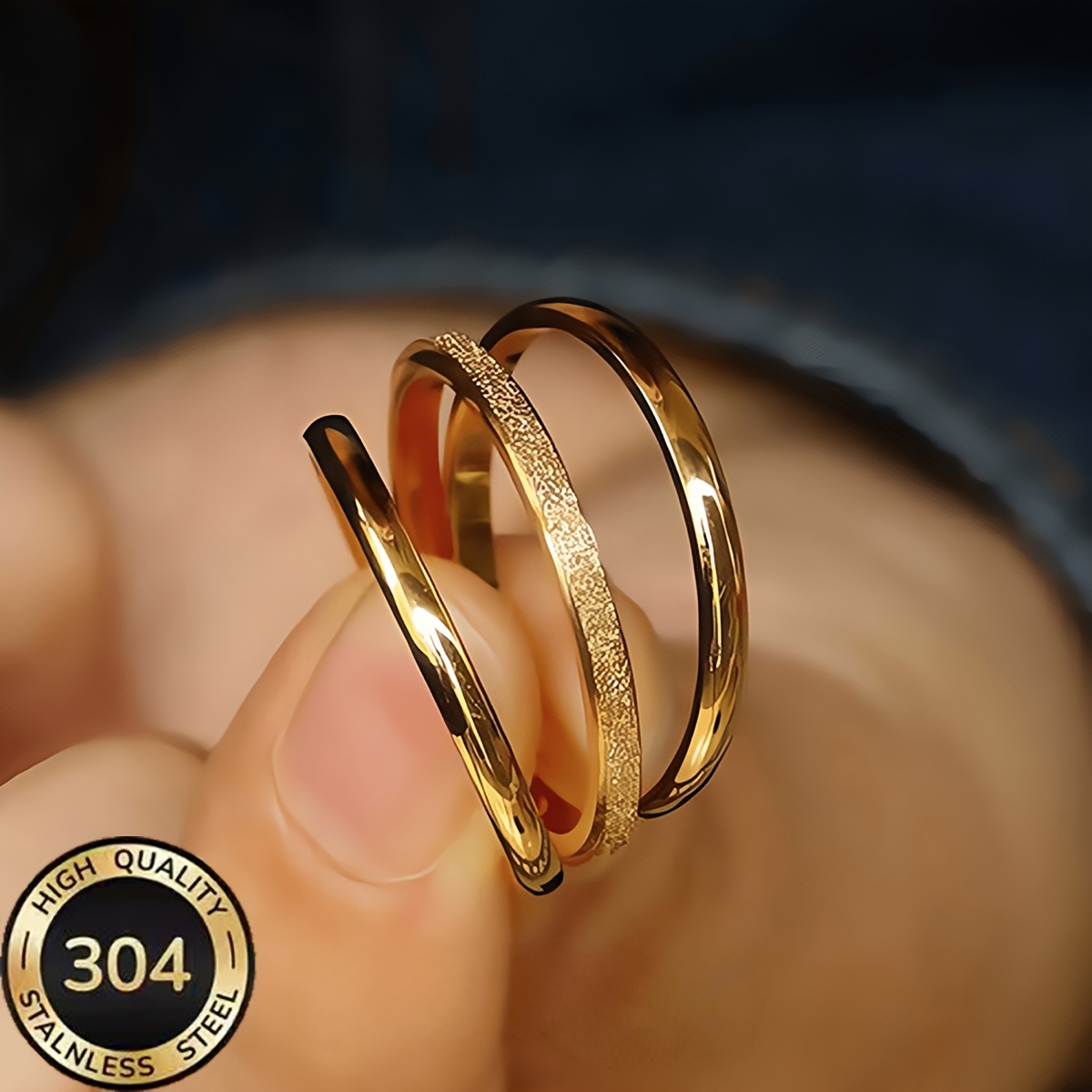 TEMU 여성을 위한 스택형 반지 3종 세트. 18K 금도금 304 스테인리스 스틸 재질이며, 반짝이는 무광 및 무광 마감이 함께 제공됩니다. 이 반지는 저자극성이며, 변색에 강합니다.