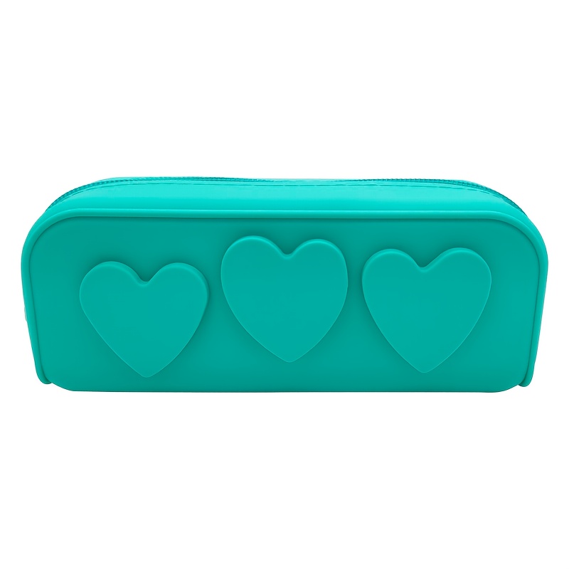 TEMU 실리콘 소재의 하트 모양 수납 가방, 뷰티 정리용 메이크업 연필 케이스, 야외 여행 및 캐주얼 휴대에 적합.