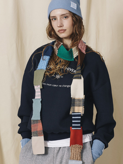 [비트윈에이앤비] 레터링 자가드 기모 스웨트셔츠 다크네이비