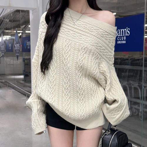 딥스 오프숄더 니트 케이블 스웨터 탑