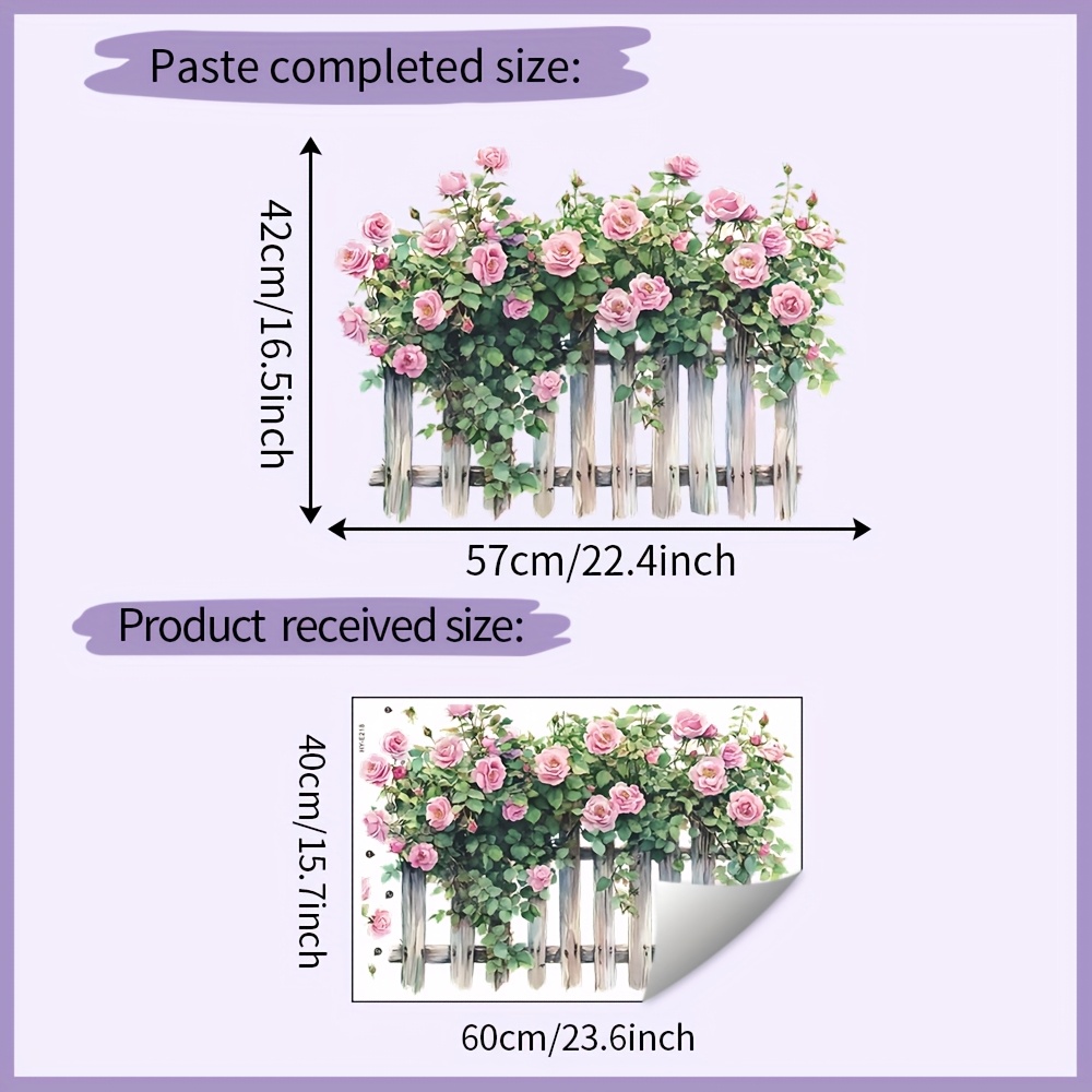 TEMU 1개, 장식 스티커, 울타리 장미 녹색 잎사귀, 탈착 가능한 방수 PVC 스티커, 거실, 침실, 욕조, 문 장식에 적합, 15.7*23.6인치, 벽용 장미 벽지, 핑크 벽지, 벽용 장식, 홈용 벽 장식, 대형 자체 접착 벽 타투, 벽 스티커, 접착식 벽 스티커, 벽지스티커, 타일스티커, 현관문시트지, 벽스티커, 스티커 인테리어