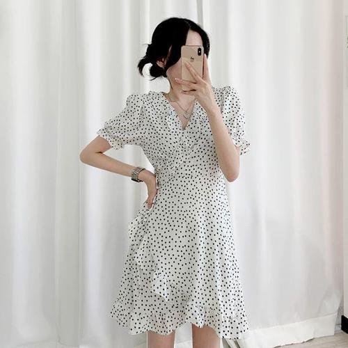 [니까니까]여성용 도트 프릴 랩 원피스