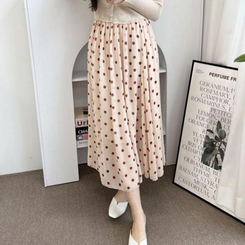 도트 플레어 롱 스커트 /땡땡이 허리밴딩 체형커버 봄 여름 USK110
