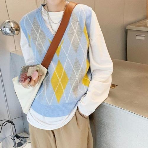 땡처리 크롭 조끼 울니트조끼 체크조끼 크롭조끼 WFLMXS0