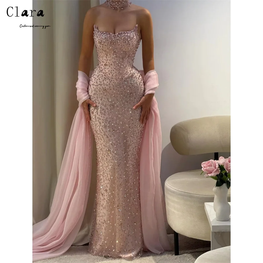 클라라 커스텀 피쉬테일 라인스톤 오프숄더 반짝이는 우아한 롱 파티 드레스 시크 웨딩 이브닝 드레스 럭셔리 2025 여성용