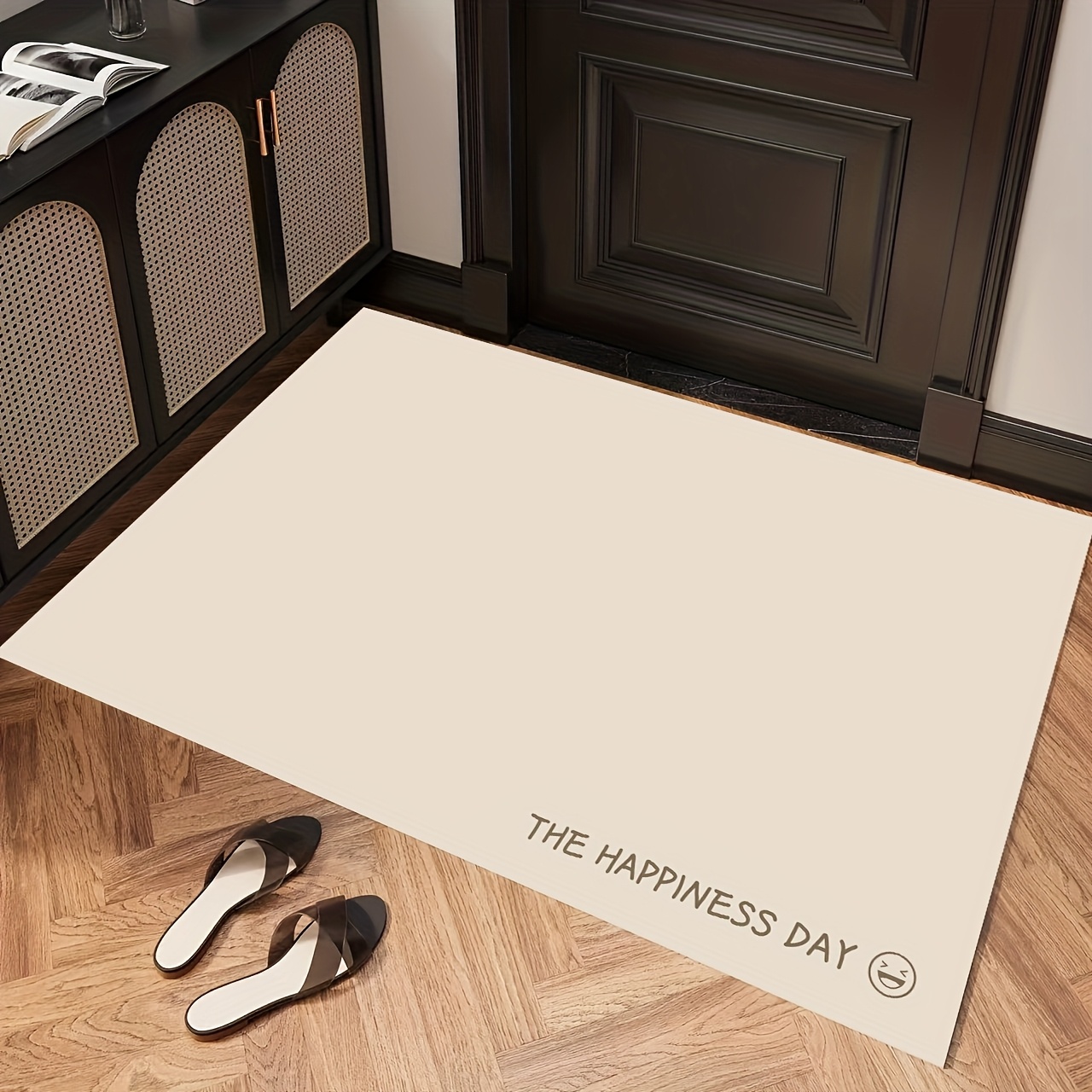 TEMU 귀여운 고양이 아파른 1개. 흰색, 검정색, 주황색의 귀여운 새끼 고양이들이 검정색 배경에 장식되어 있습니다. 재미있는 'Wow' 표정 디자인으로, 튼튼한 폴리에스터로 제작되어 요리, 베이킹에 이상적입니다.