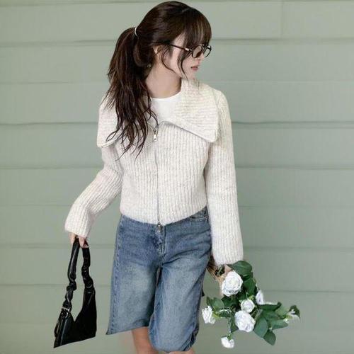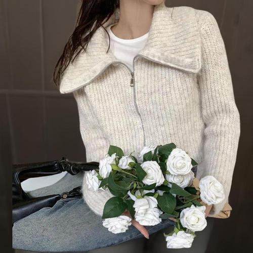 [신상오픈런]여성용 터틀넥 울 니트 집업 가디건 뜨개질 스타일