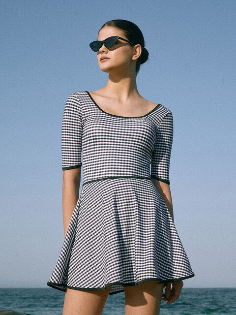 [라메레이] 깅엄체크 스퀘어 넥스윔수트