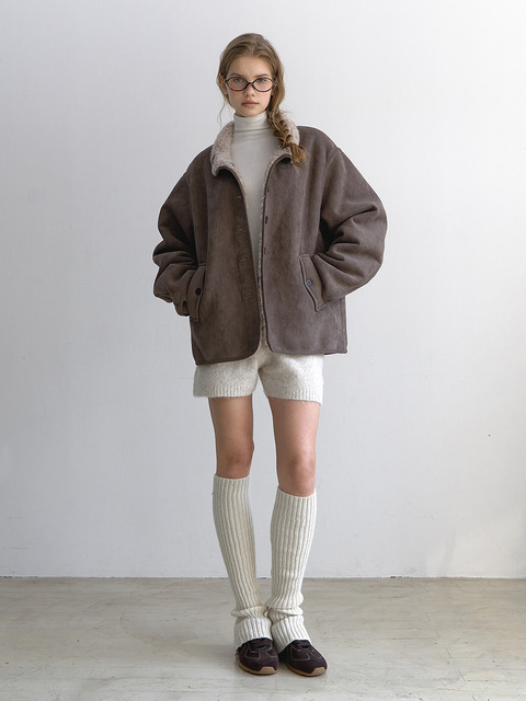 [라미네즈] 하이넥 무스탕 자켓 - 다크 브라운