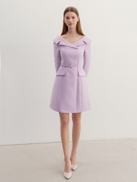 [비에이유 바이 브라이드앤유] 벨리타 와이드 브이넥 노치드 카라 울 실크 미니 드레스 (Lavender/Black)