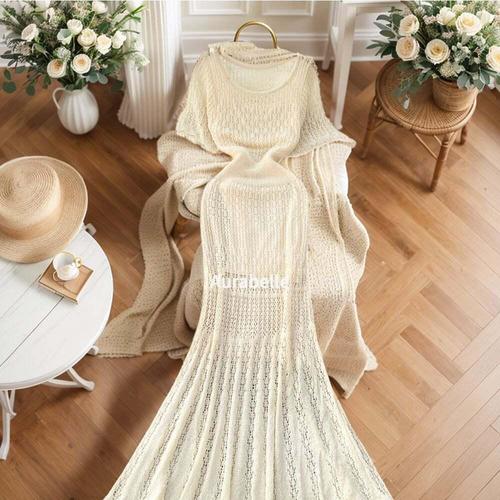 [모노무드]모노무드 아우라벨르 글램펀칭니트 시스루반팔롱원피스 베이지