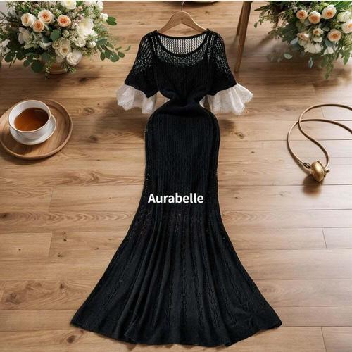 아우라벨르 슬림핏 스판니트 롱원피스치마 하객 블랙