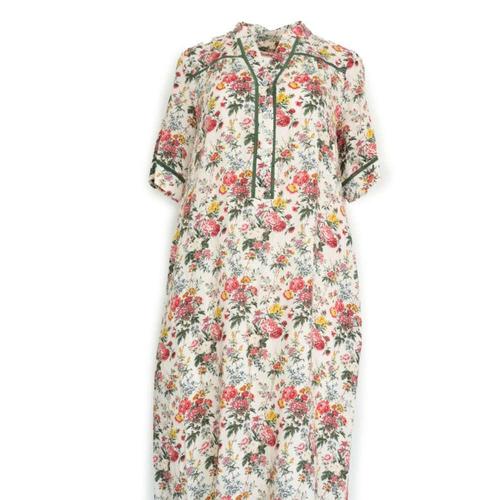 [비꼴리끄]린넨 프린트 라운드 카라 칠부 원피스 B242WO3230