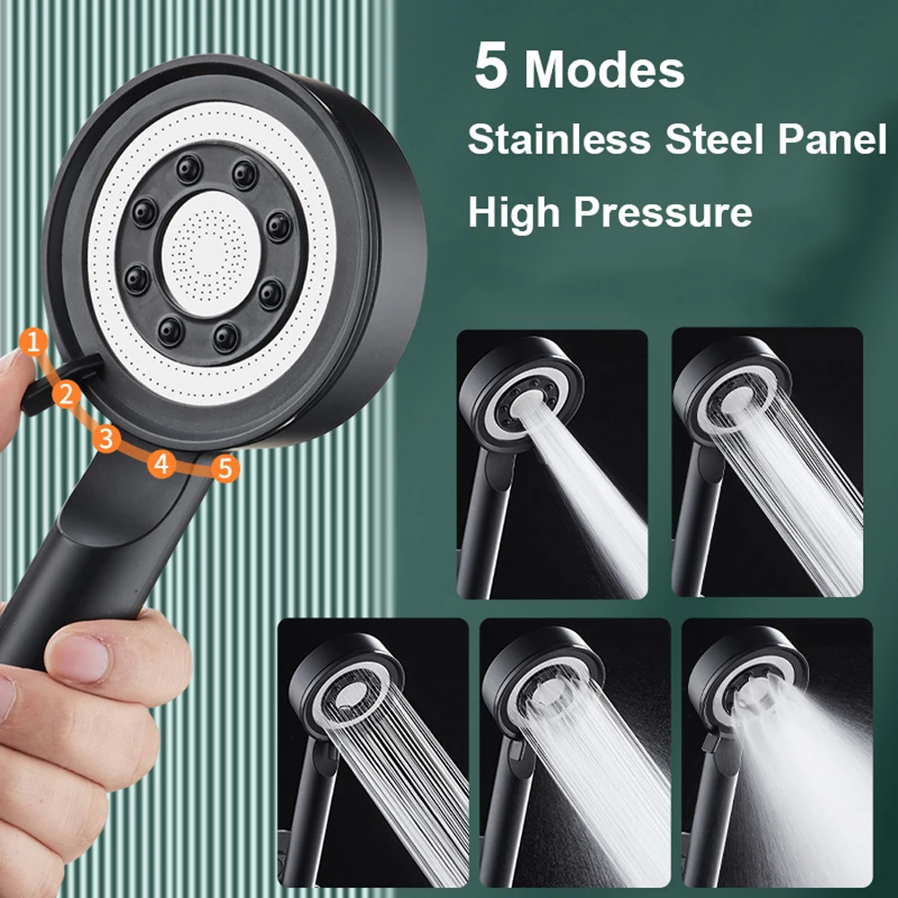 조절 가능한 5가지 모드 샤워 헤드 고압 휴대용 절수 샤워 헤드 호스 포함 가정용 욕실 액세서리