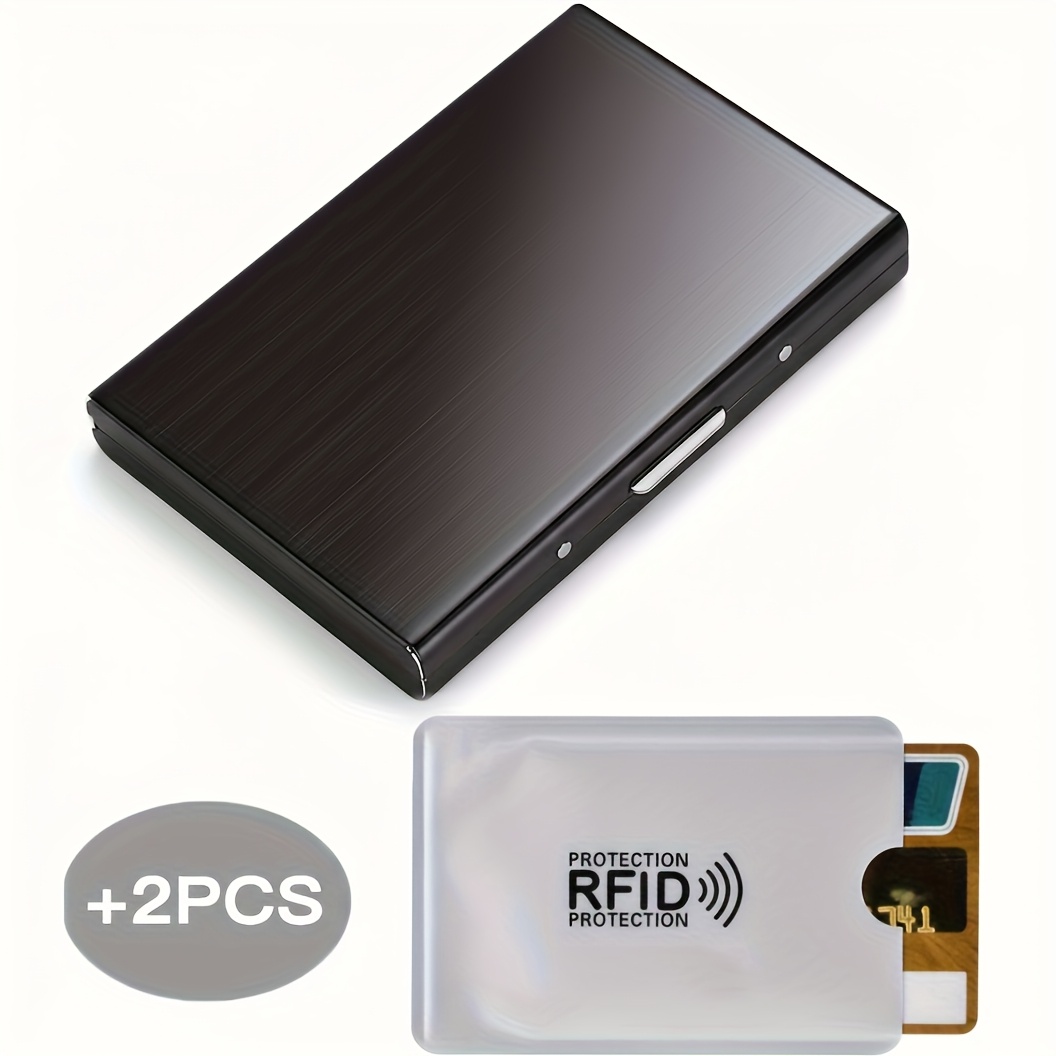 TEMU 남성용 헤비듀티 스테인리스 스틸 RFID 차단 카드 홀더 - 2슬리브 보안 수납, 16개 이상 카드, 신분증 및 현금용 멀티슬롯 지갑 - 도난 방지 신용카드 케이스 (폴리쉬 블랙) - 아빠, 남편, 남자친구를 위한 이상적인 선물 (여행 및|남자가방