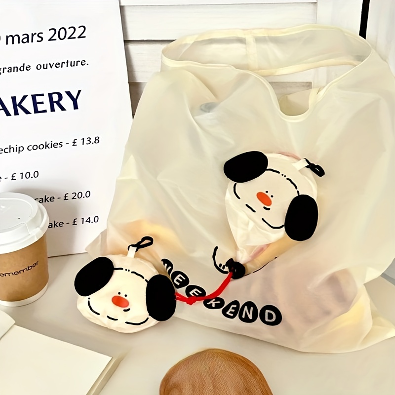 TEMU 휴대용 강아지 쇼핑백 - 재사용 가능한 접이식 토트백, 드로스트링 잠금, 튼튼한 폴리에스터, 식료품 및 여행에 적합, 크리스마스, 할로윈, 부활절, 추수감사절과 같은 휴일에 완벽, 강아지 토트백, 재사용 가능한 식료품 가방, 재미있는 디자인