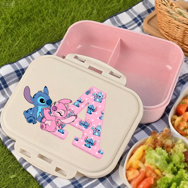 스티치 도시락 가정 사무실 피크닉 도시락 귀여운 애니메이션 알파벳 A-Z 소녀 보온 보냉 사각 도시락 케이스 어린이 선물