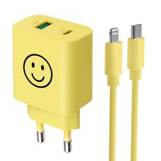 모잇 PD25W 2포트 PPS 초고속충전기 + 8핀 라이트닝 아이폰 케이블 1.3m, 옐로우 스마일, 1개