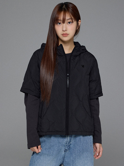 [라이프워크] Lite 커브드 퀼팅 반팔 후드 다운 점퍼_LW254DJ703