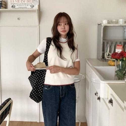 [다잇템][다잇템] 여성 스웨터 배색라인 베이직 조끼_22887725_588872