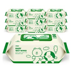 아이러브베베 라인프렌즈 그린 에디션 아기물티슈 캡형, 75g, 77매, 10세트