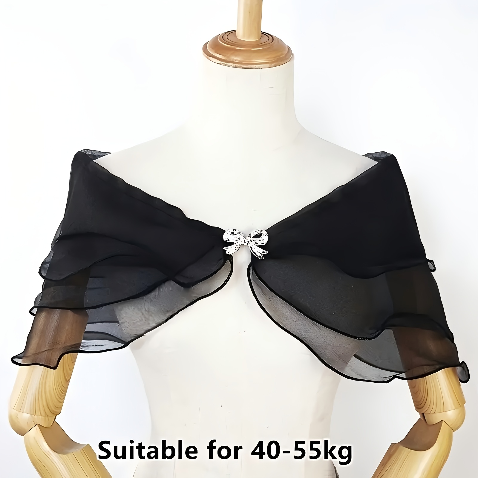 TEMU 1개 여성용 멀티 레이어 버블 쉬폰 숄, 우아한 솔리드 컬러 시스루 오프숄더 숄, 라인스톤 리본 클라스프, 웨딩드레스 치파오 숄