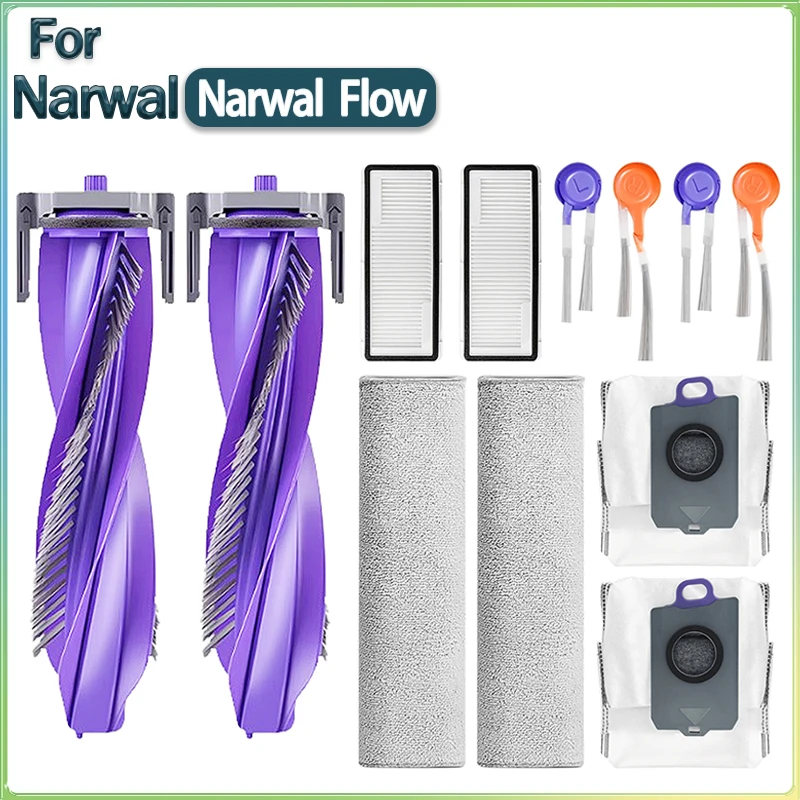 나르왈 플로우 로봇 청소기 액세서리에 적합: 메인 브러시/트랙 걸레/사이드 브러시/HEPA 필터/먼지 봉투