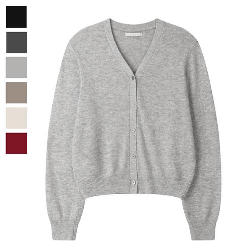 [리빌모아]여자 라쿤 베이빅 와이넥 니트 가디건 SGW-CA-Q088-백멜란지